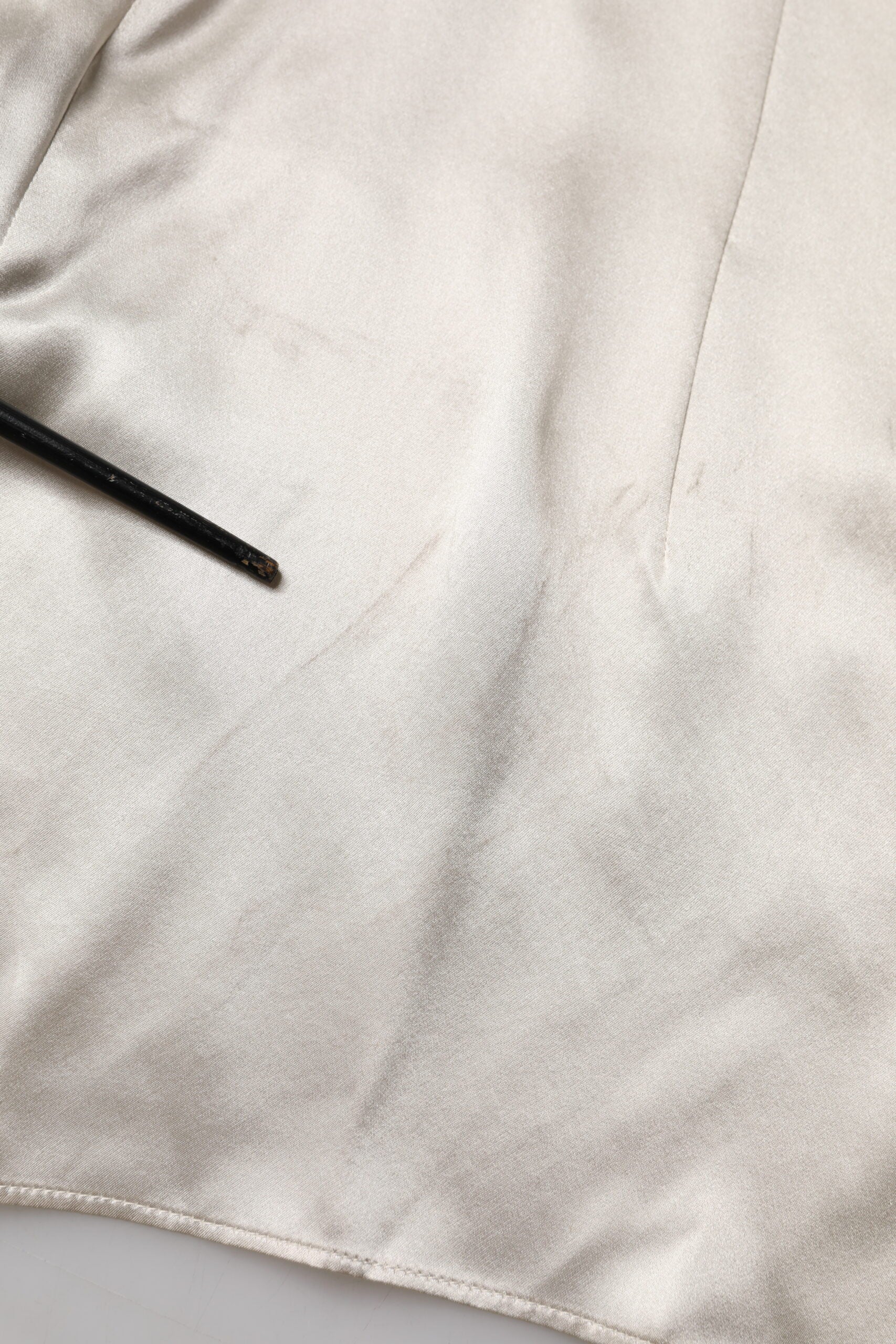 Beige Satin Silk Collared Long Sleeves Top