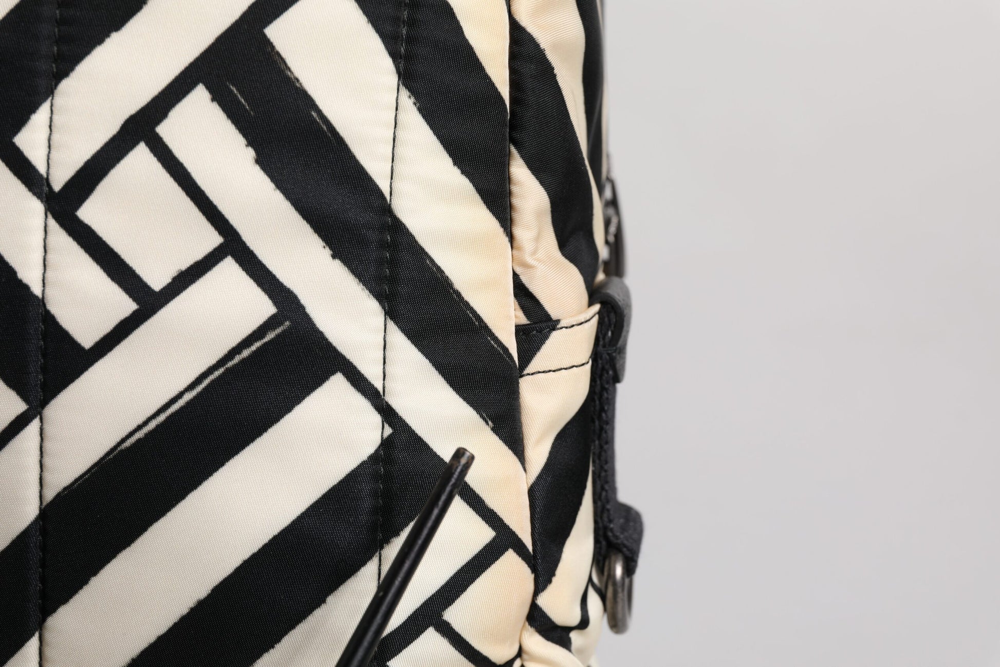 Black White Nylon Leather Travel Back Pack Bag