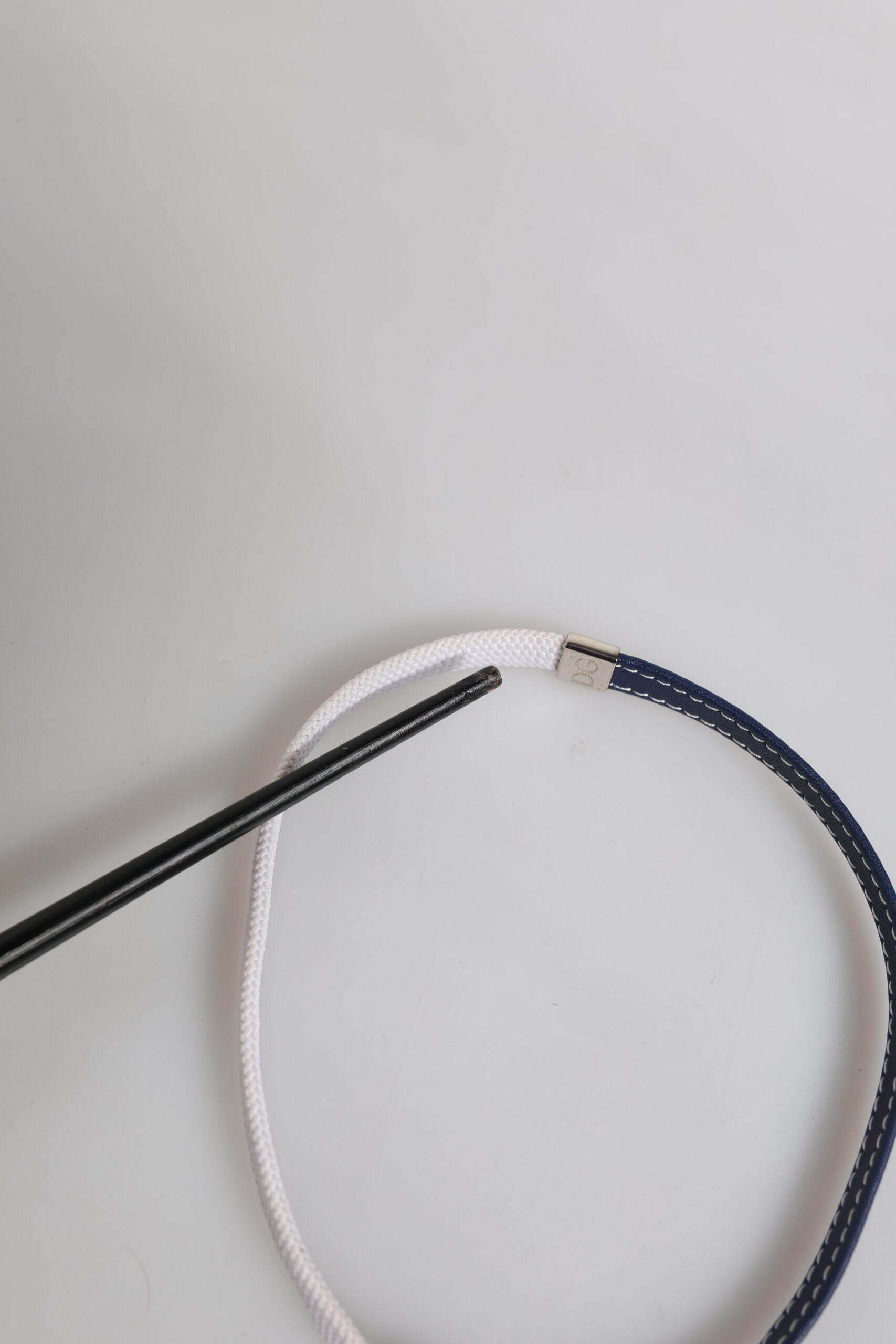 Blue White Leather Trimmed DG Engraved Silver Tone Clasp Bracelet