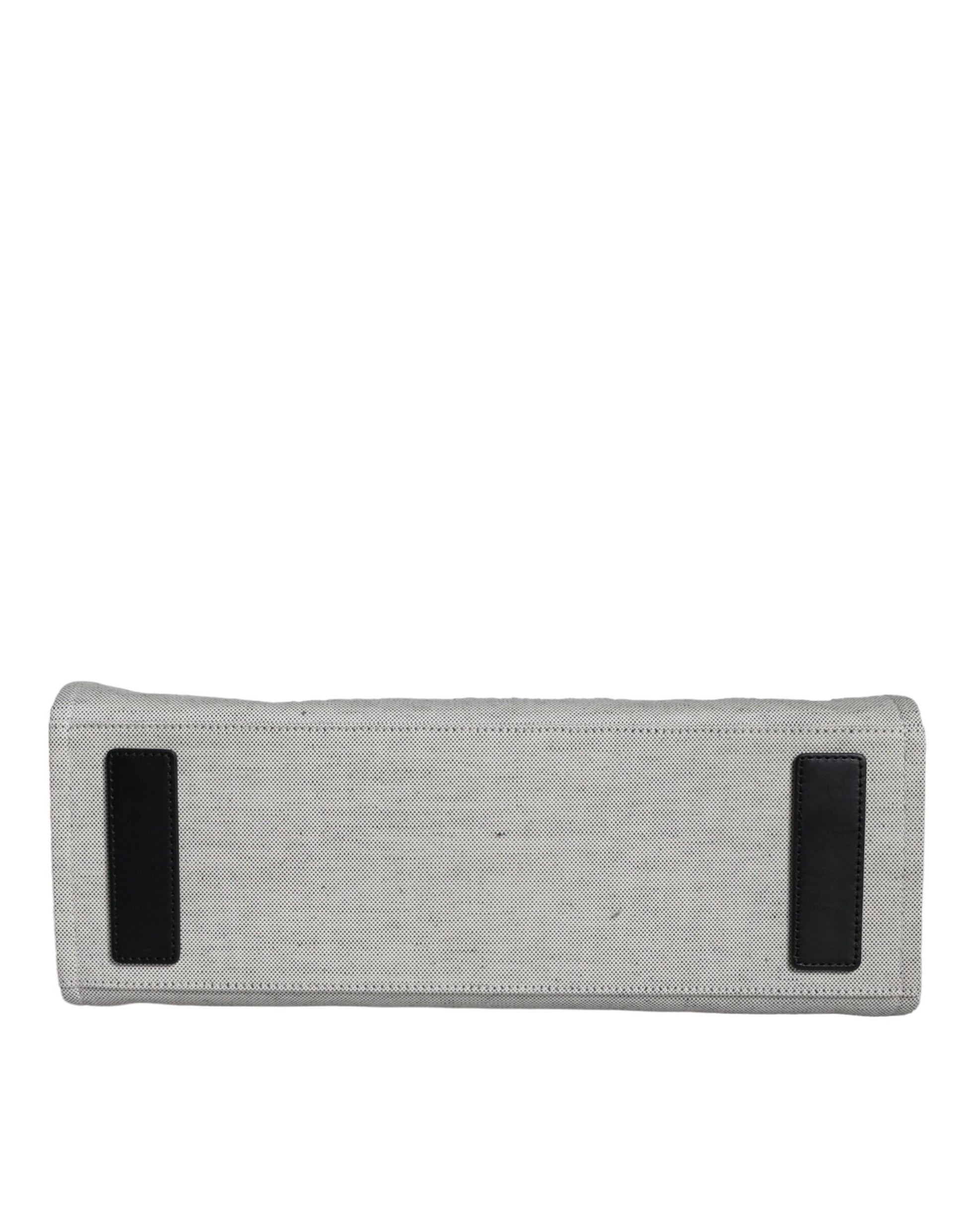 White Top Handle Canvas Leather Logo Crossbody Tote Bag