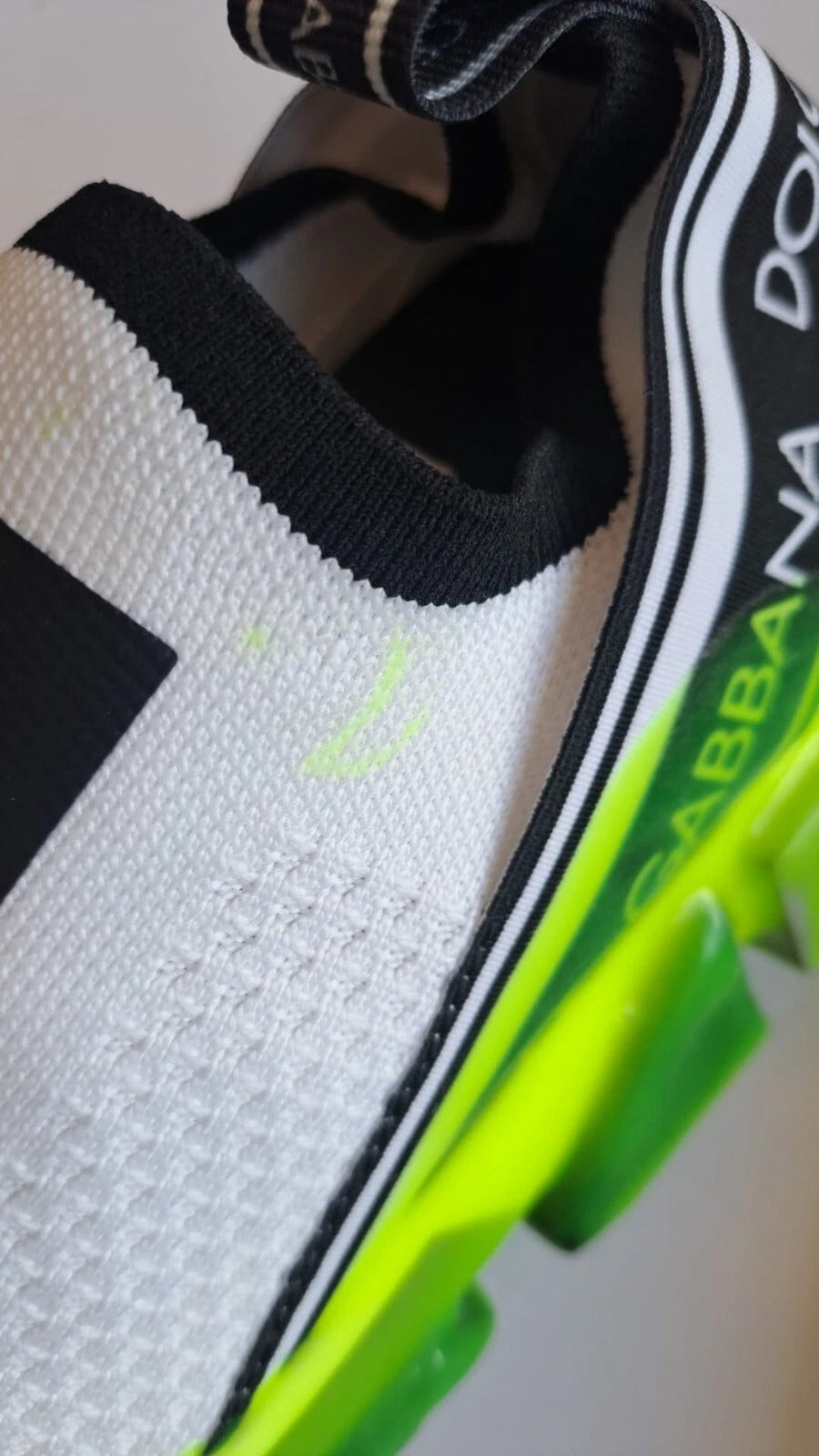 Gorgeous brand new with tags, 100% Authentic Dolce & Gabbana White and yellow ‘Sorrento’ sneakers. Decorated with a logo print in white and black. Fabric pull strap sewn-in at the back. Black decorative rubber sole.